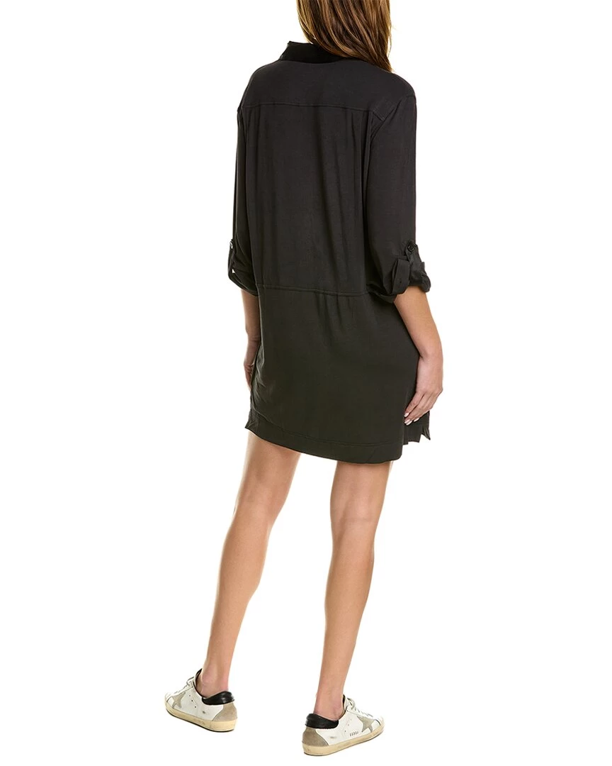 - Mavea Silk-Trimed Dress In Black With Tunic Silhouette, Single Breast Pocket, 3/4-Length Sleeves, And Rolled Cuffs