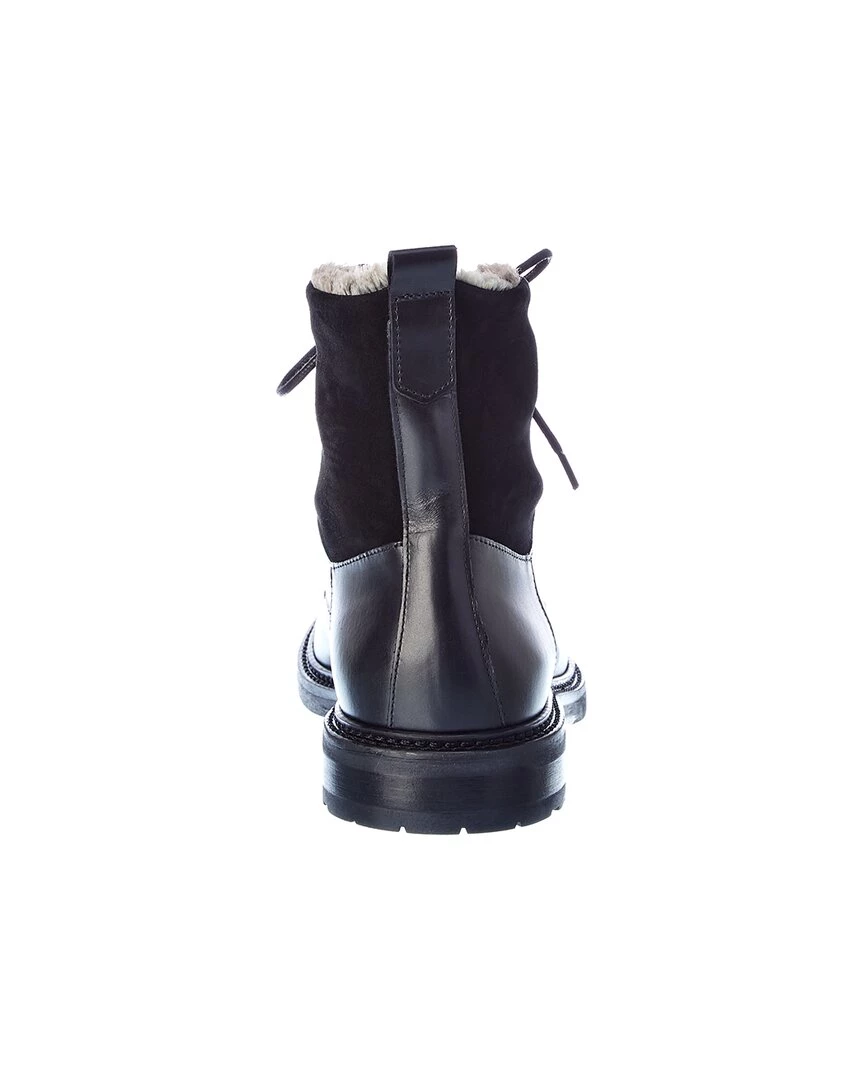 - Cerone Leather & Suede Boot In Black Leather And Suede With Faux Fur Lining
