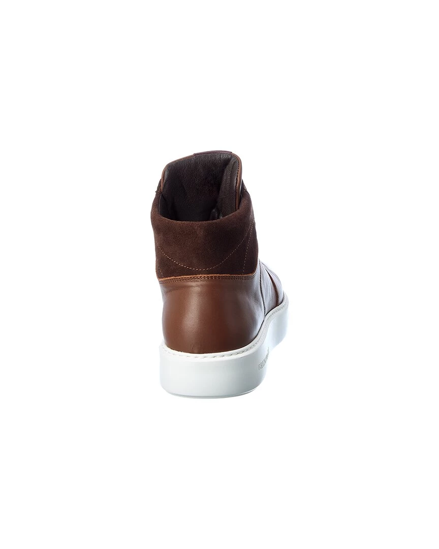 - Cesare Leather & Suede High-Top Sneaker In Cognac Leather And Suede With Perforated Detailing