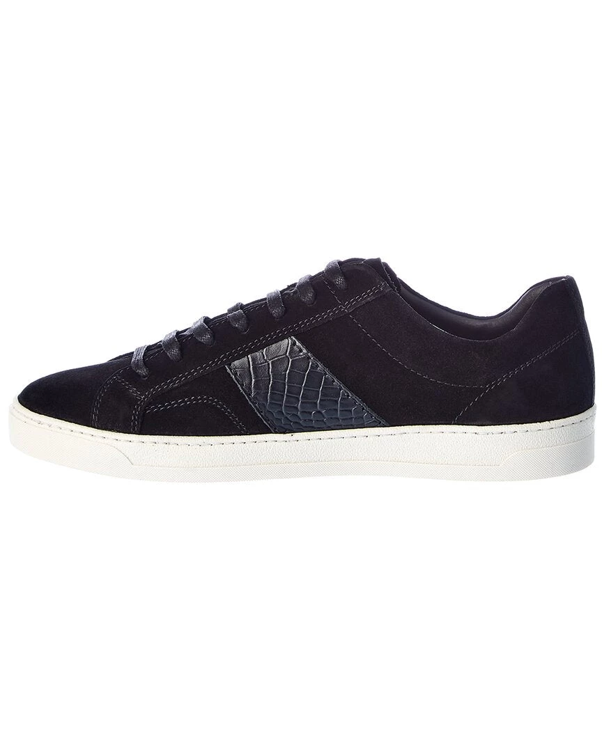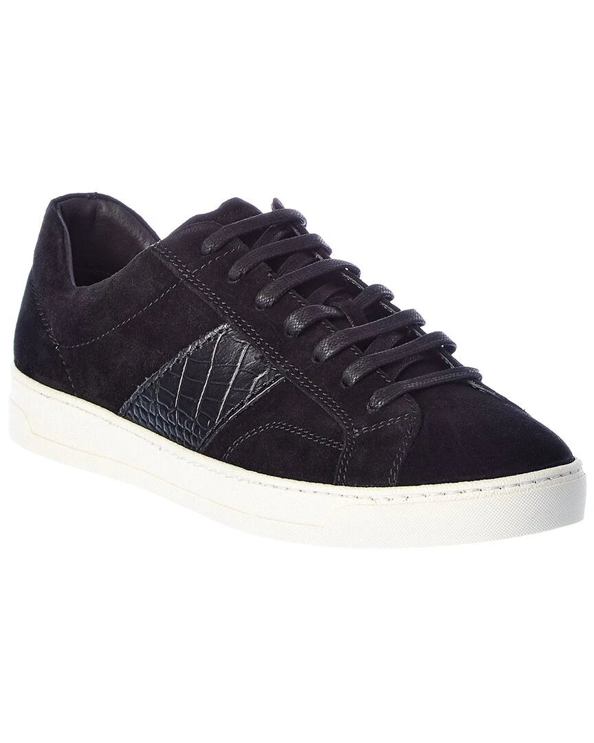 - Justice Suede Sneaker In Black Suede With Croc-Embossed Leather Details