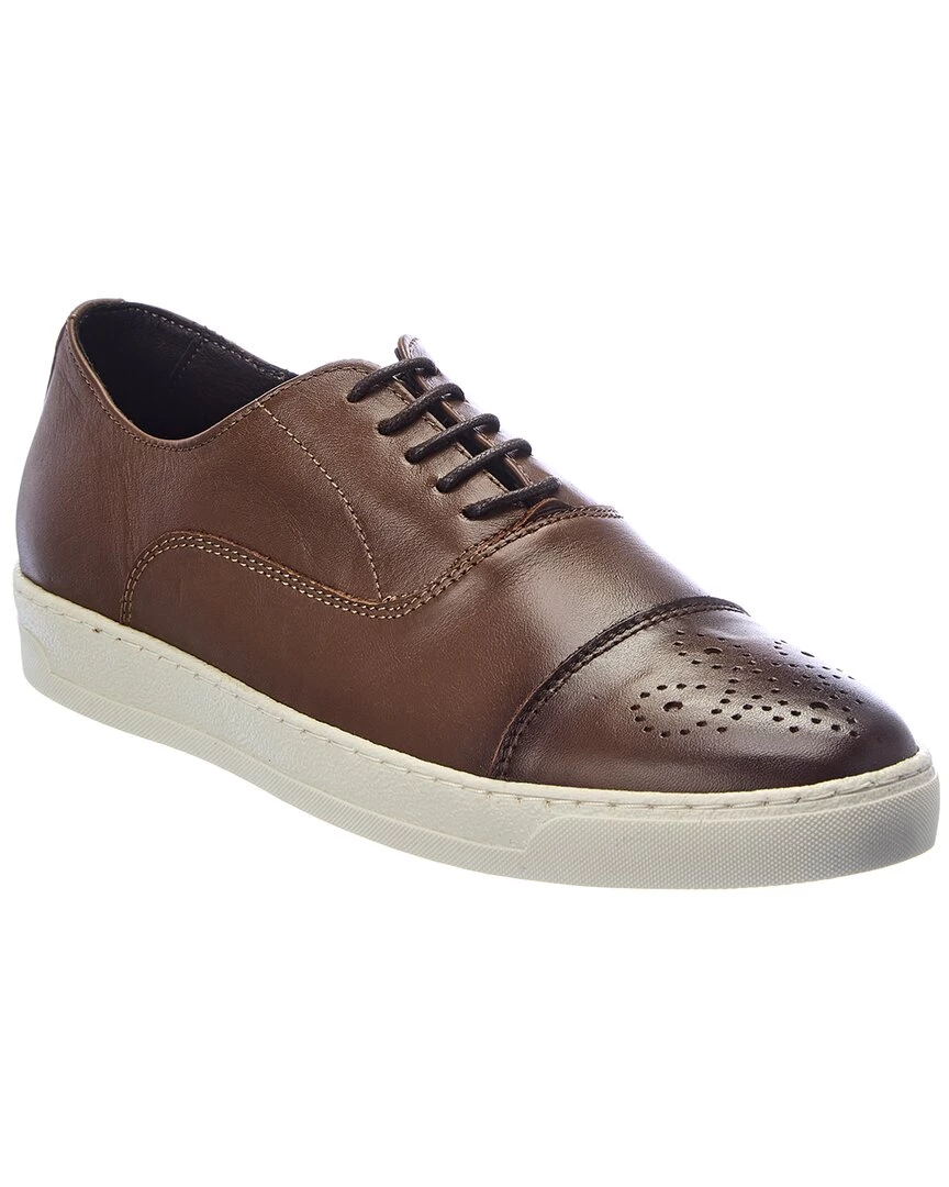 - Stefanucci Leather Sneaker In Cognac Leather With Perforated Detailing