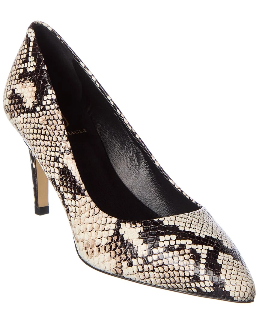 - Stella Snake-Embossed Leather Pump In Black And White Snake-Embossed Leather With Pointy-Toe