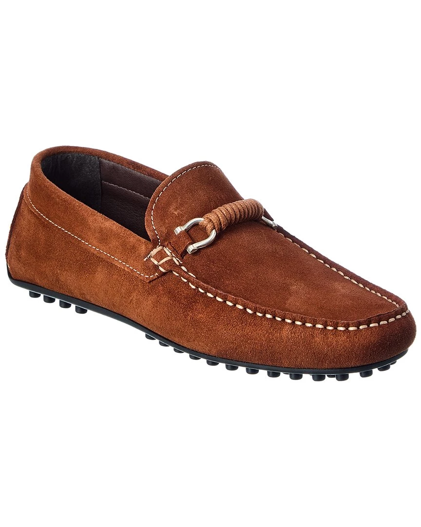 - Torro Suede Loafer In Cognac Suede And Silver-Tone Hardware With Link Accents And Flexible Sole