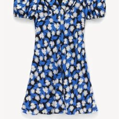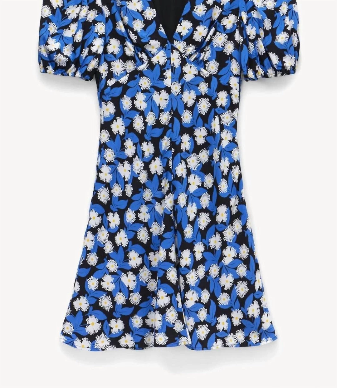 Short sleeve mini dress that features a v-neck and empire waistline.
