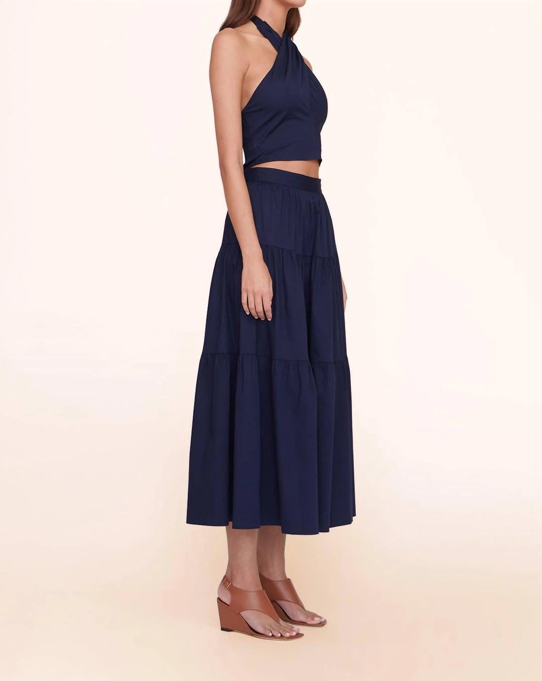 Sea Skirt is a tiered ankle-length cotton poplin skirt and features a side zipper.• Ankle Length Skirt• Dry Clean Only• Model is 5’10” and wearing a size 2 Â