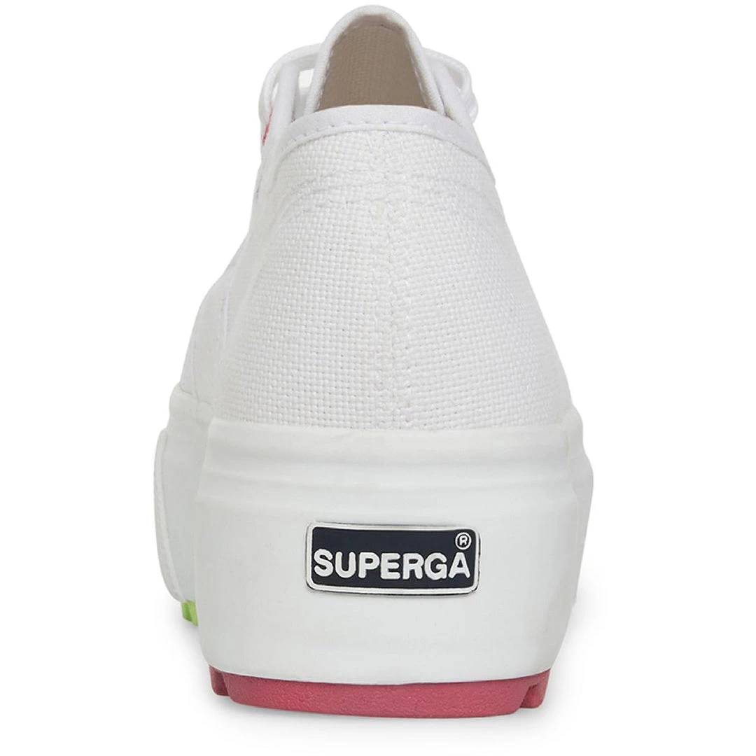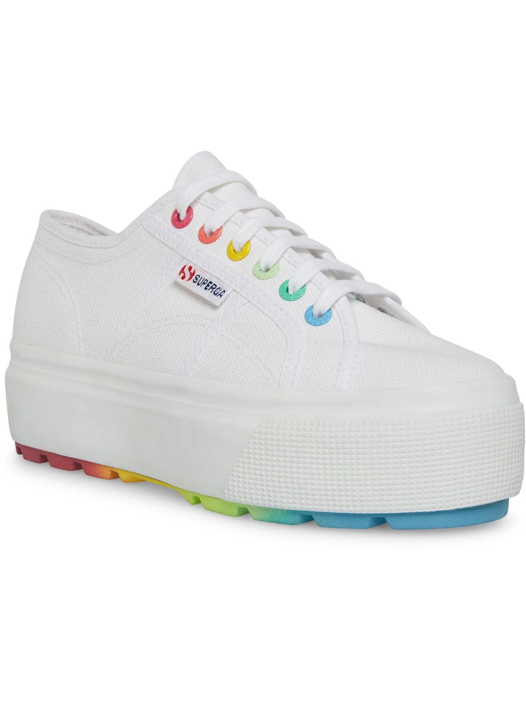 Fall in love with the 2790 canvas platform sneakers by Superga. Breathable canvas uppers with a lace up vamp. These sneakers feature rainbow colored accents on a classic platform design. Padded footbed for comfort and stability. Rubber outsoles.